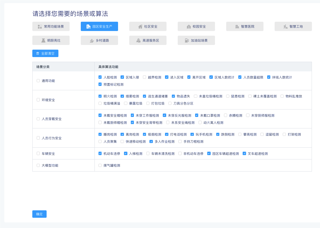 為了滿足用戶靈活算法應用,跨行業AI算法選擇,公司將算法庫分配邏輯進行調整,調整后可以在AI智能分析盒、AI邊緣服務器上120多種法任選30種加載使用。