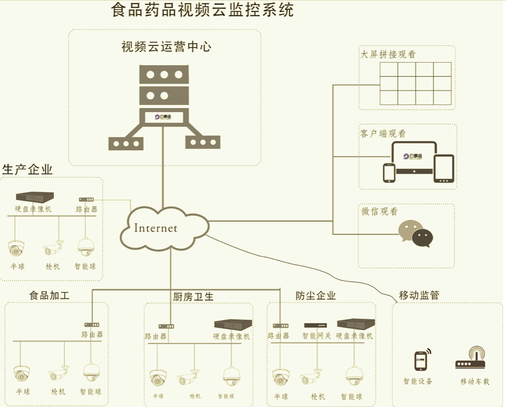企業生產規模擴大,給生產管理監督管理帶來工作量加大,管理難度加強。深圳市云事通網絡有限公司集合自身多年從事綜合智能安防視頻監控系統的經驗為食品監督管理設計了一套基于視頻圖像的安全生產全程監控系統。其利用國際國內最先進的計算機技術、網絡傳輸技術、網絡存儲技術等而設計,借助音視頻編解碼技術對食品生產進行全程的實時遠程監視管理,為民眾提供參與窗口,相關管理部門可通過網絡實現遠程實時監督、管理。