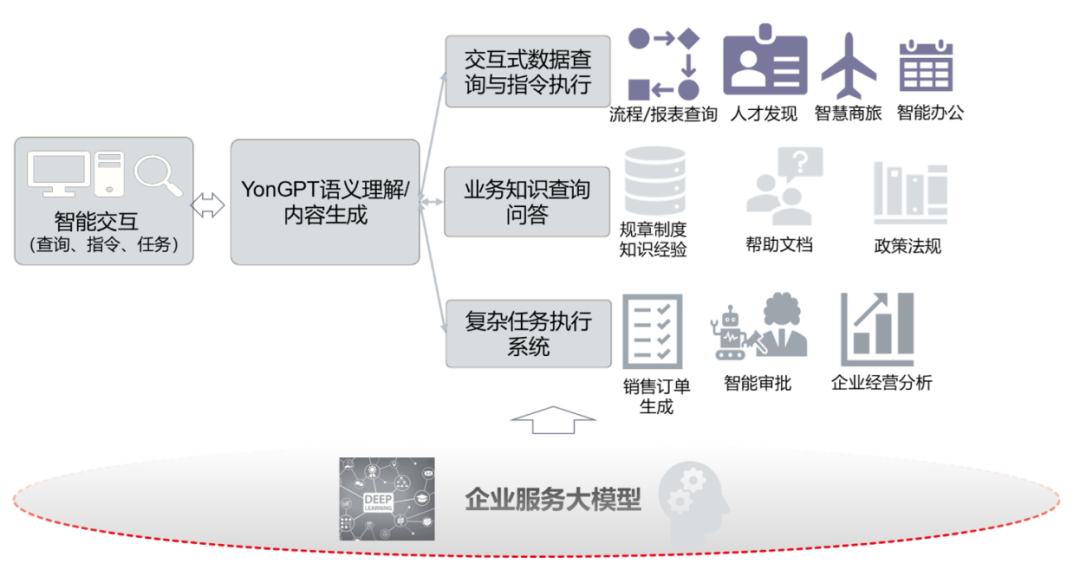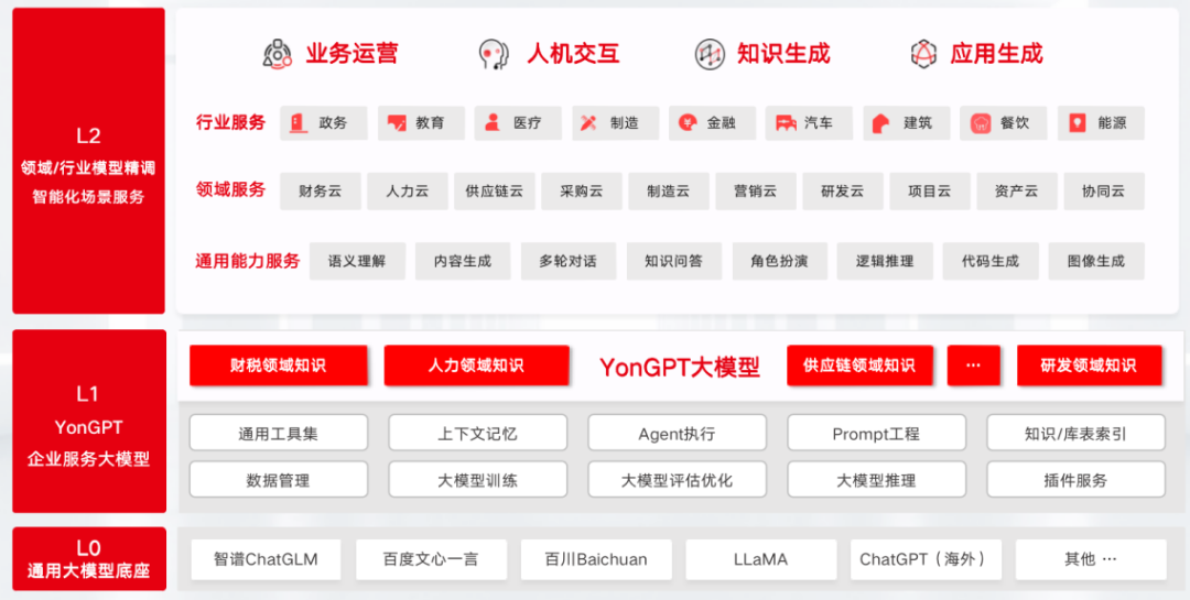 YonGPT為企業智能化賦能的能力分為通用能力、應用能力兩層。