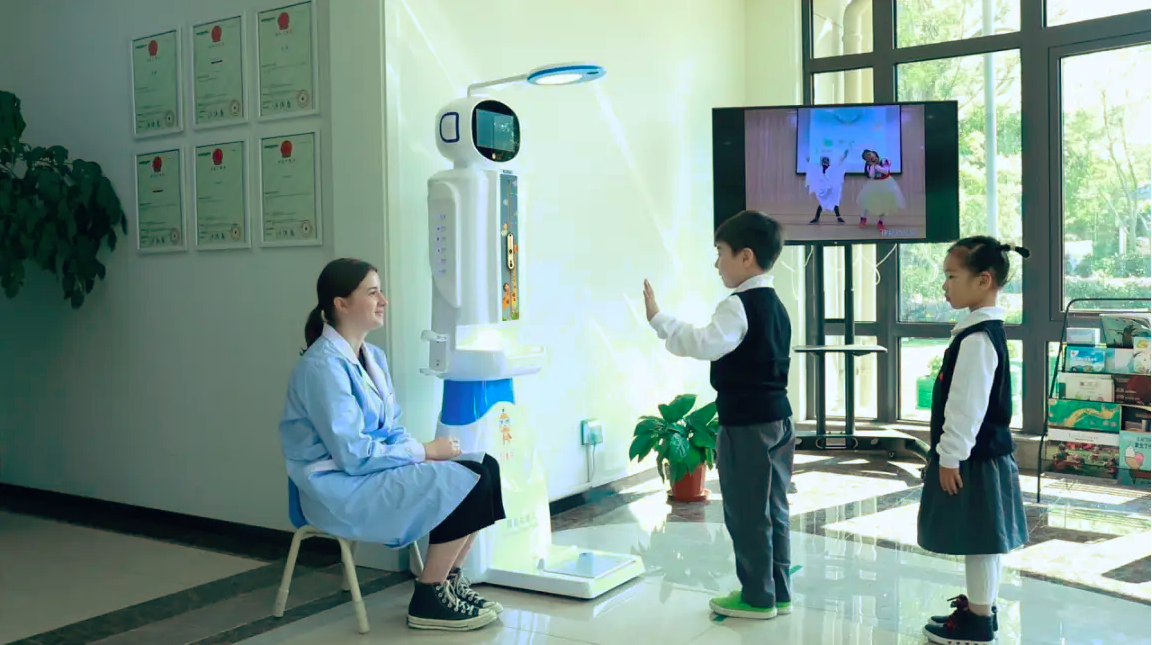 體表檢查:可能使用圖像識別或其他傳感器技術,檢查學生的體表狀況,如皮膚有無異常、眼睛是否發紅等。