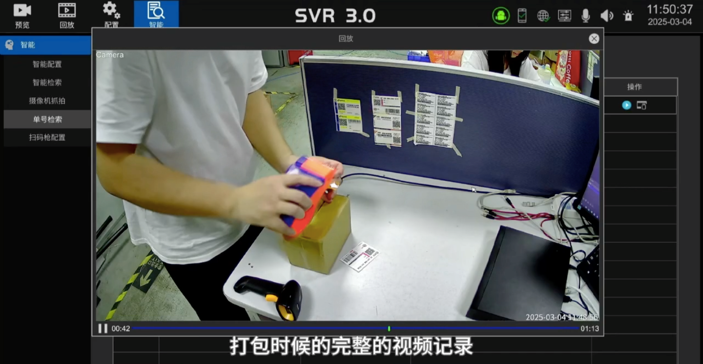 快遞打包監(jiān)控取證系統(tǒng)在流水線生產(chǎn)崗位和產(chǎn)品檢驗崗位上方部署普通的網(wǎng)絡攝像頭和掃碼槍,可通過掃碼采集產(chǎn)品條形碼數(shù)據(jù)、掃描時間節(jié)點與攝像頭采集的視頻融合,可設置掃描后需要錄像的時間,然后利用條形碼單號快速檢索對應產(chǎn)品生產(chǎn)和檢驗過程中的視頻片段,從而在面臨出現(xiàn)問題時:例如發(fā)生因質(zhì)量問題退貨時,可快速的進行產(chǎn)品可視化溯源。