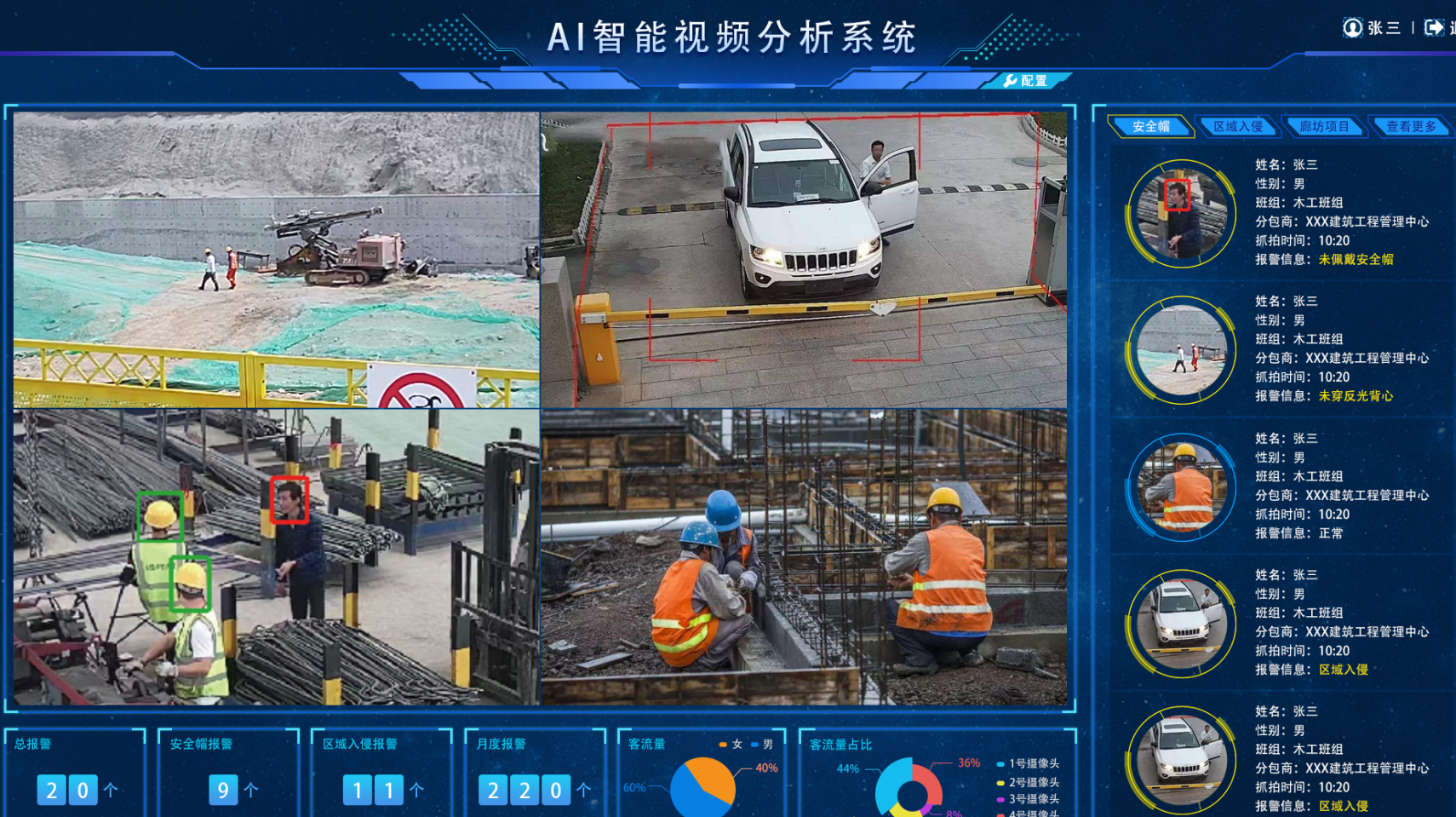 為滿足工地“自動化監(jiān)控、智能化管理”的需求,針對建筑工程施工項目管理點位多、管理范圍大,監(jiān)控不到位等問題,中建八局發(fā)展建設(shè)有限公司開發(fā)了“建筑工地‘慧眼’AI 識別系統(tǒng)”,該系統(tǒng)為單個攝像頭配置多種算法,實現(xiàn)對視頻監(jiān)控內(nèi)多種場景的實時分析,提升 AI 技術(shù)在建筑行業(yè)落地應用的水平。