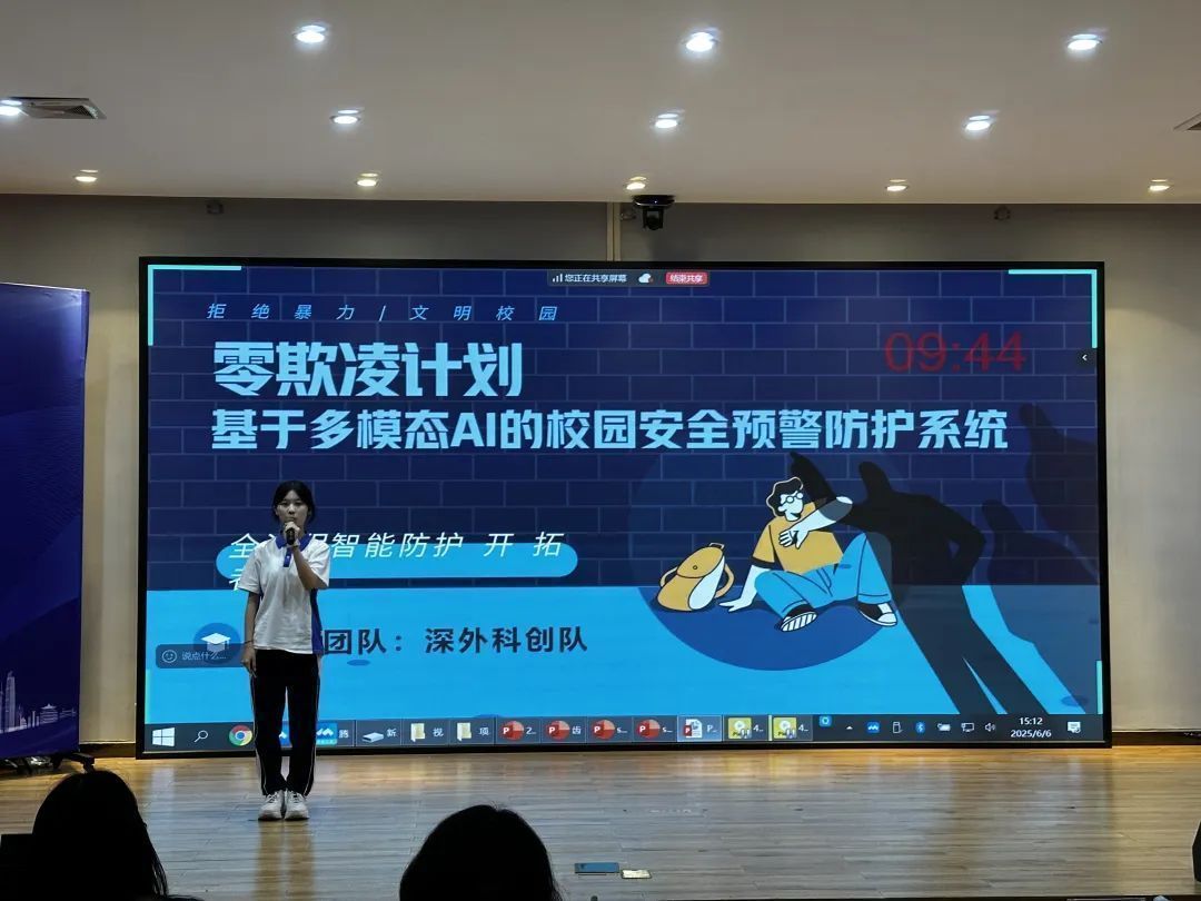 據(jù)悉,“零欺凌計劃”校園霸凌預(yù)警系統(tǒng)參加了中國國際大學(xué)生創(chuàng)新大賽(2025)萌芽賽道項目,并獲得深圳市一等獎。