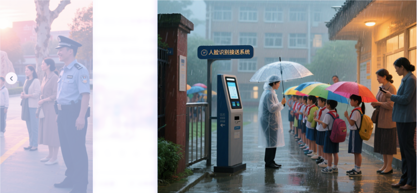 ?高精度識別?:采用高精度的人臉識別技術,只有注冊過的家長才能成功接送孩子,識別準確率高達99.9%,有效攔截限制外來人員進園,保障學生安全。